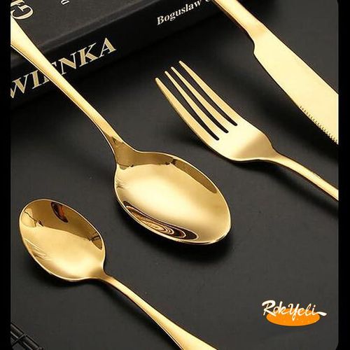 Fini les couverts rouillés, dépareillés ou ternes qui gâchent vos repas ! Découvrez ce somptueux coffret de 24 pièces en acier inoxydable, disponible en finitions luxueuses Or,soigneusement rangé dans une mallette dorée au design chic et prestigieux.